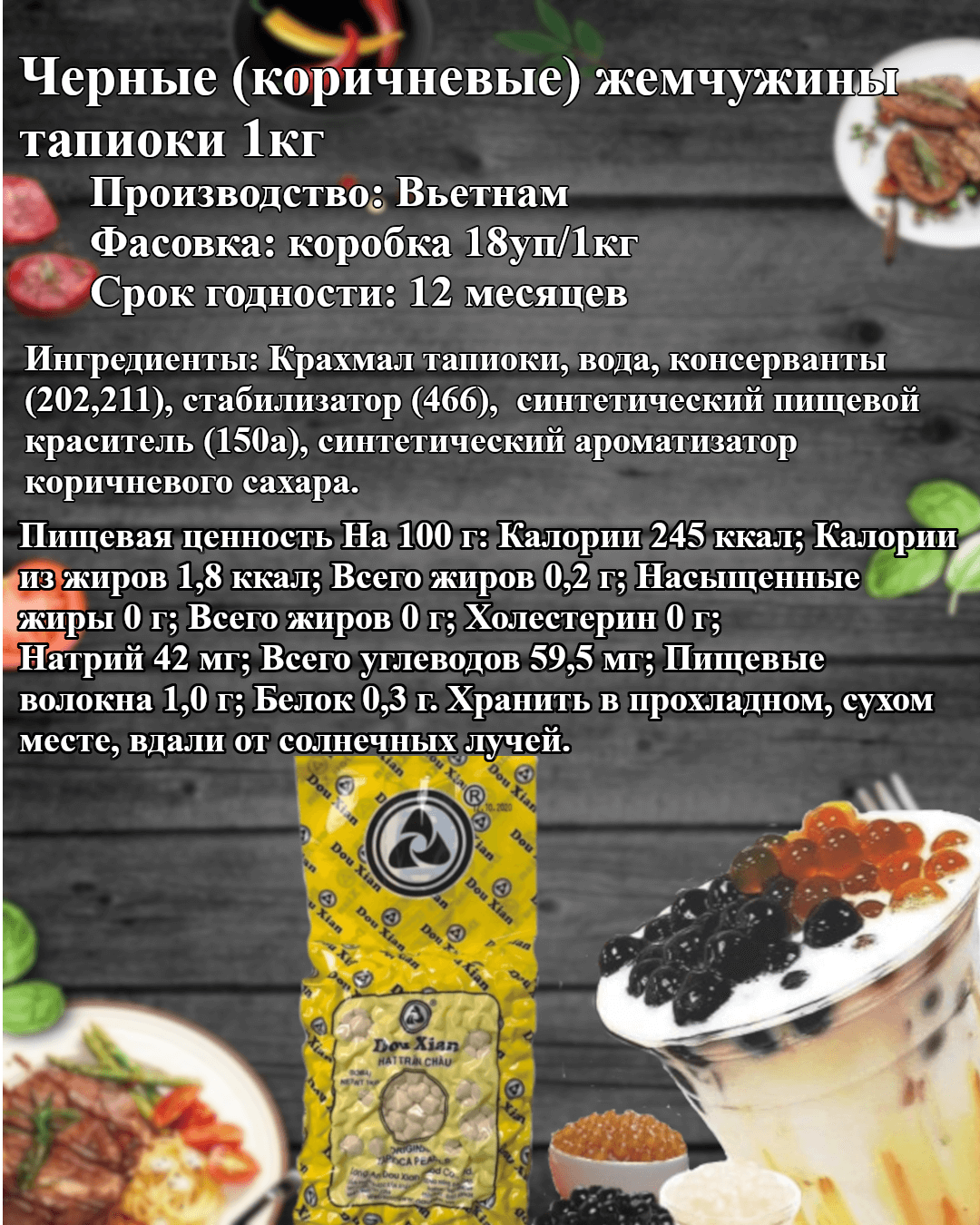 Главная Вьетнамские продукты Черные (коричневые) сахарные шарики тапиоки 1 кг (размер 2,2 — 2,5 мм)