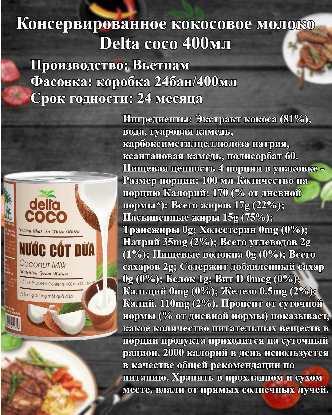 Главная Молоко Кокосовое молоко Delta Coco 400 мл